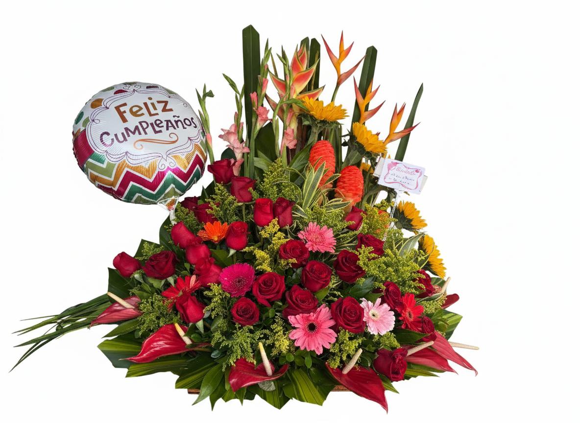 En Loren’s Floristería , cada celebración merece ser inolvidable. Este arreglo ha sido diseñado como una verdadera fiesta floral, una sinfonía de colores y texturas creada para los momentos más felices, ideal para celebrar un Feliz Cumpleaños con un gesto grandioso.