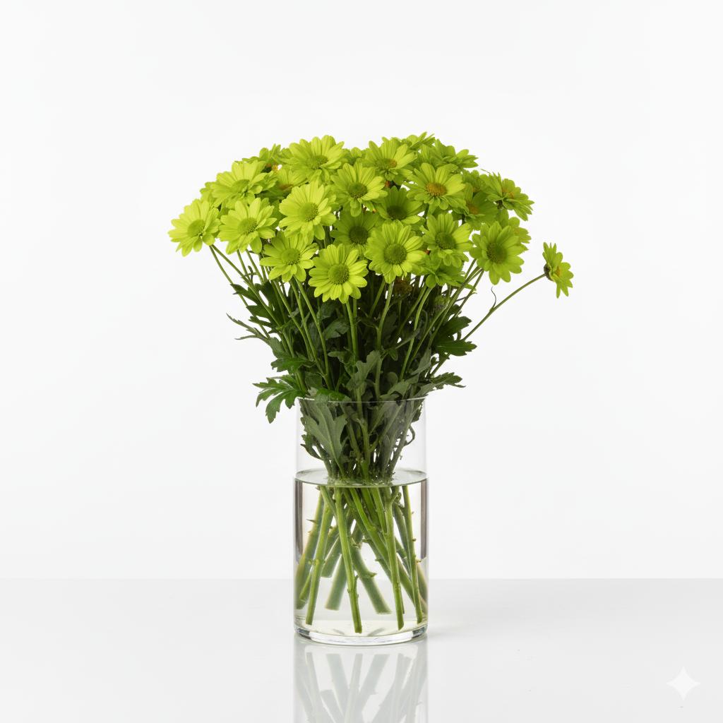 El verde es el color de la esperanza, el crecimiento, la armonía y la renovación. Es la tonalidad que nos conecta con la naturaleza, evocando calma y equilibrio. Al integrar estas Margaritas Verdes en un arreglo, o al disfrutarlas solas, estás añadiendo un mensaje de vitalidad, frescura y prosperidad.