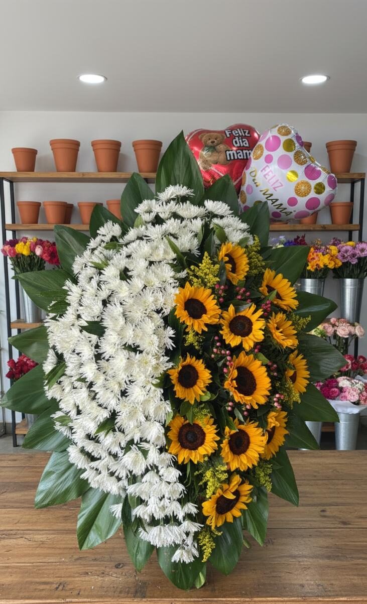 Este diseño especial rompe con lo tradicional, utilizando la luz de los Girasoles como centro. Simbolizando la adoración y la vida eterna, su color intenso es un recordatorio de la alegría y el optimismo que esa persona compartió.