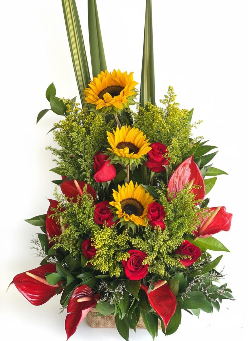 En Loren’s Floristería, creamos más que arreglos; diseñamos emociones. Te presentamos una verdadera obra de arte floral, donde la vitalidad del sol se fusiona con la intensidad del amor, perfecta para celebrar la alegría, el éxito o un amor inquebrantable.